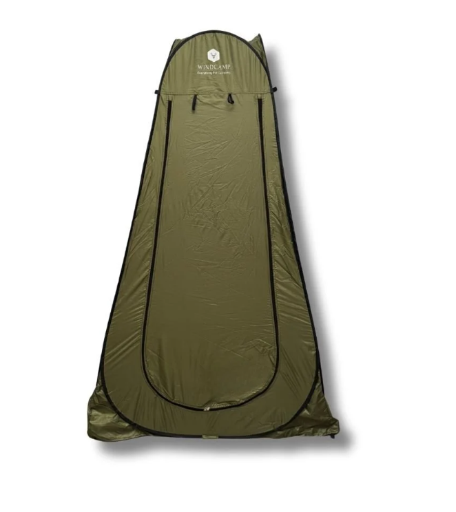 Karavan yanına kurulabilen katlanır duş, soyunma ve WC kabini.